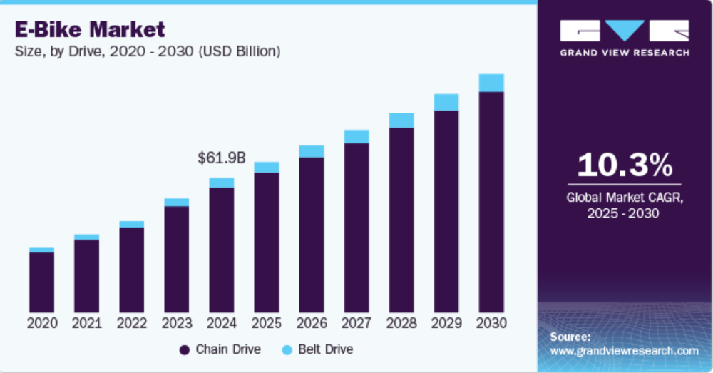 また、世界的にも「電動自転車(E-bike/電動アシスト車)」の市場が急速に成長しており、2025年~2030年にかけて約倍の市場規模になるという予測も出ています。